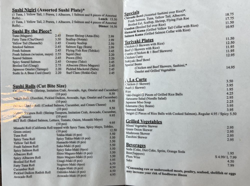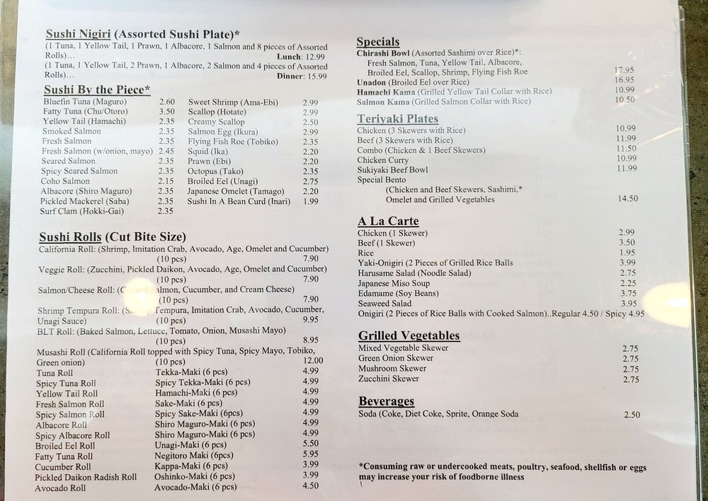 Introducing the menu at Musashi's Kent, a delightful Japanese eatery nestled in Kent, WA, you will discover a culinary adventure that showcases fresh ingredients and authentic flavors. The standout offerings include the Chirashi Bowl Special, a vibrant array of sashimi perched atop warm rice, featuring fresh salmon, tuna, and scallops, all for just $20.95. For lovers of grilled delights, the Unadon Special presents broiled eel served over rice, equally enticing at $20.95.