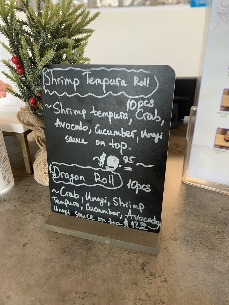 imitation crab, shrimp tempura, avocado, cucumber, unagi fish and unagi sauce on top
